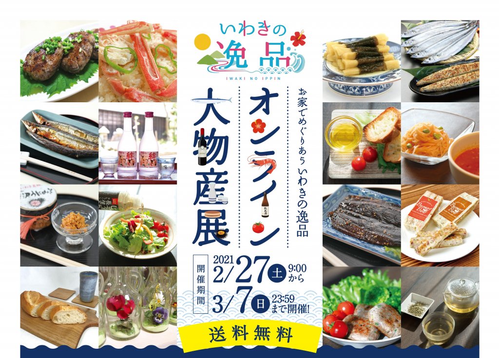 この催しは終了しました。 いわきの逸品を集めたショッピングサイト、「いわきの逸品.com」で、2020年2月27日~3月7日まで、豪華賞品などが当たるオンライン大物産展を開催中。 以下、同ホームページより。 お家めぐりあう いわきの逸品 豪華... -