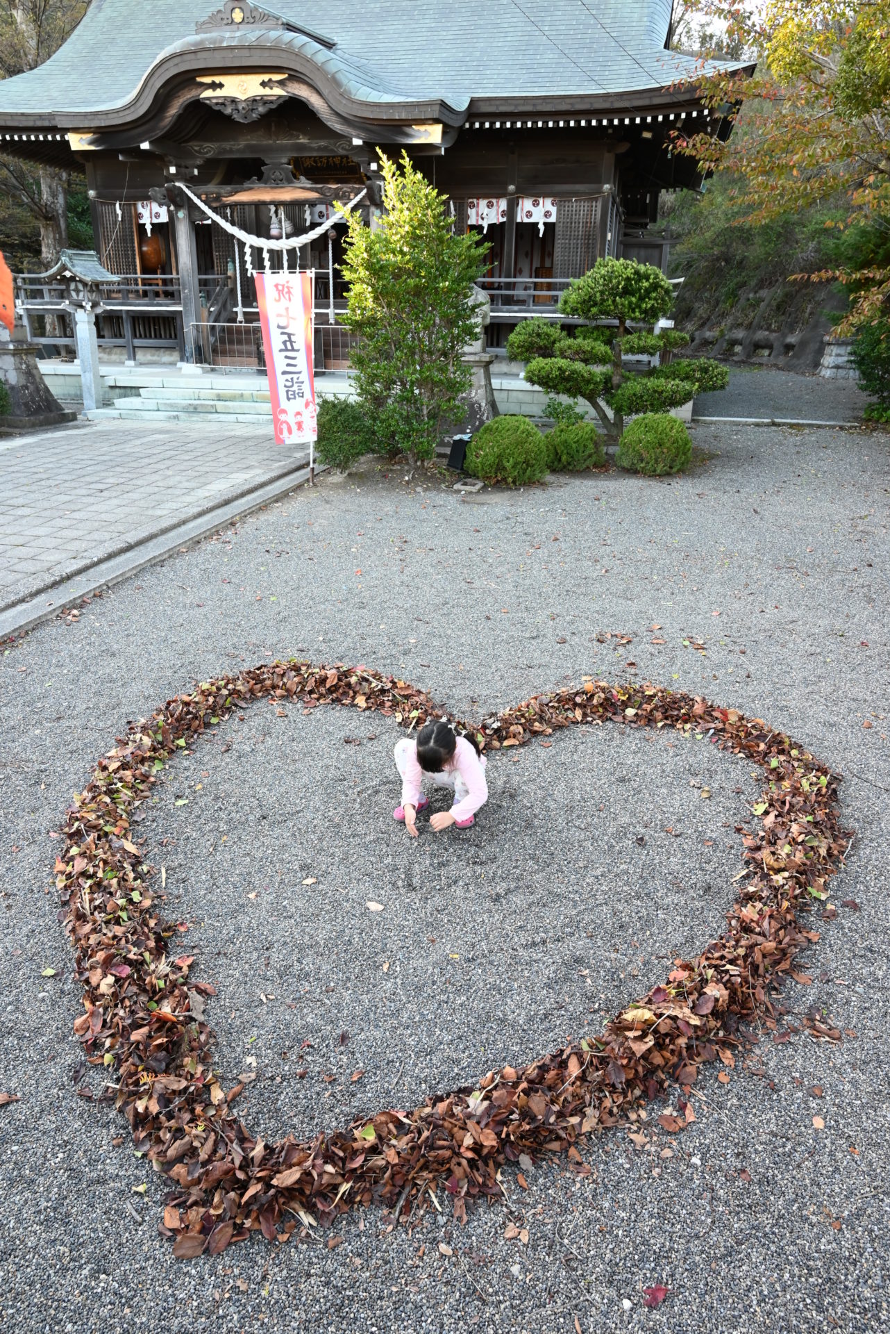 四倉諏訪神社に落ち葉アート