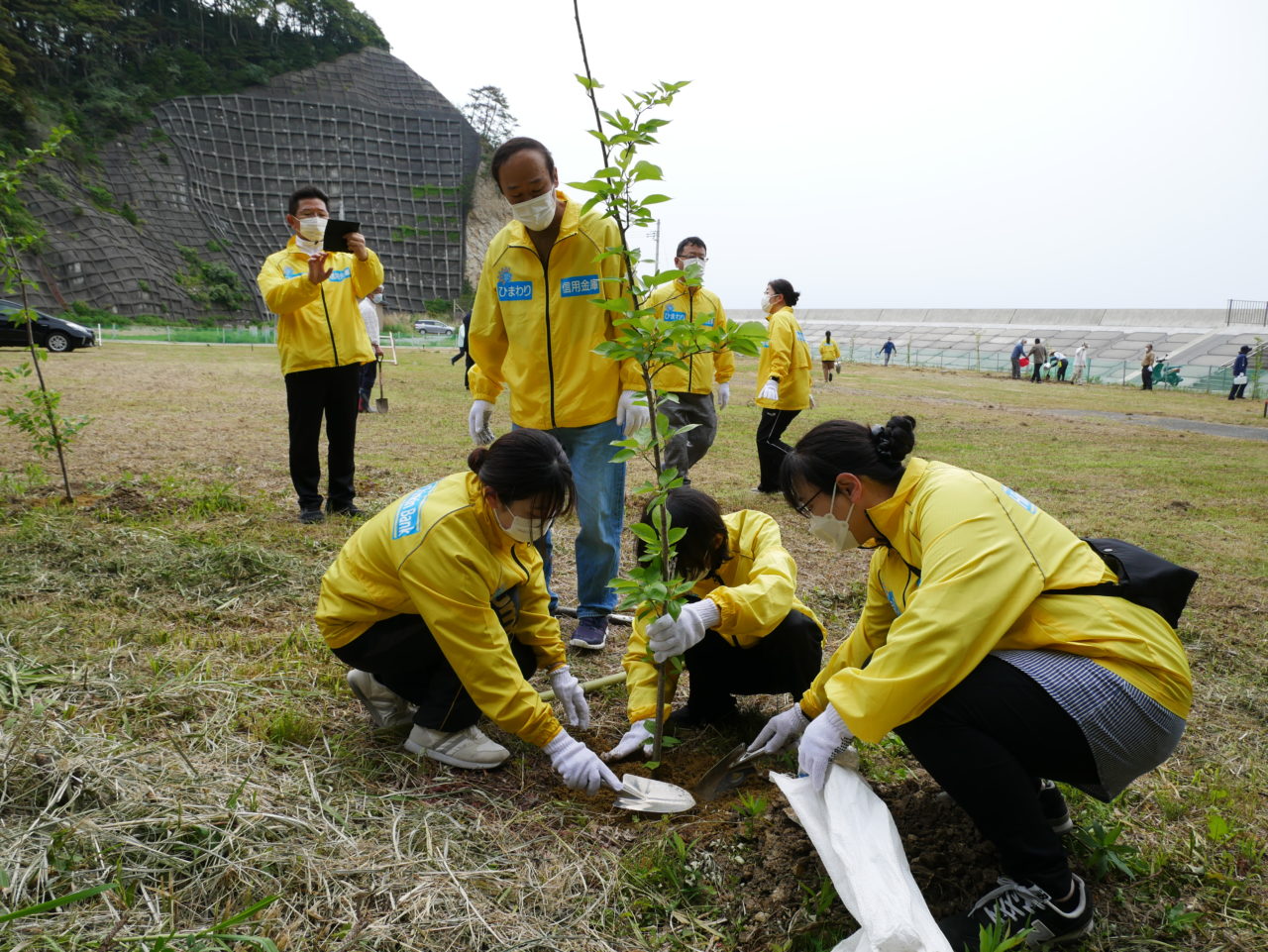 植樹をする右から、台理事長、金成区長、戸田代表 ひまわり信用金庫(台正昭理事長)は先ごろ、江名の発展と活性化を図り、夢が持てる町づくりを目指す団体「江名シングルアッププロジェクト」に桜の苗木を贈呈。江名字走出防災集団移転跡地内に植樹した... -