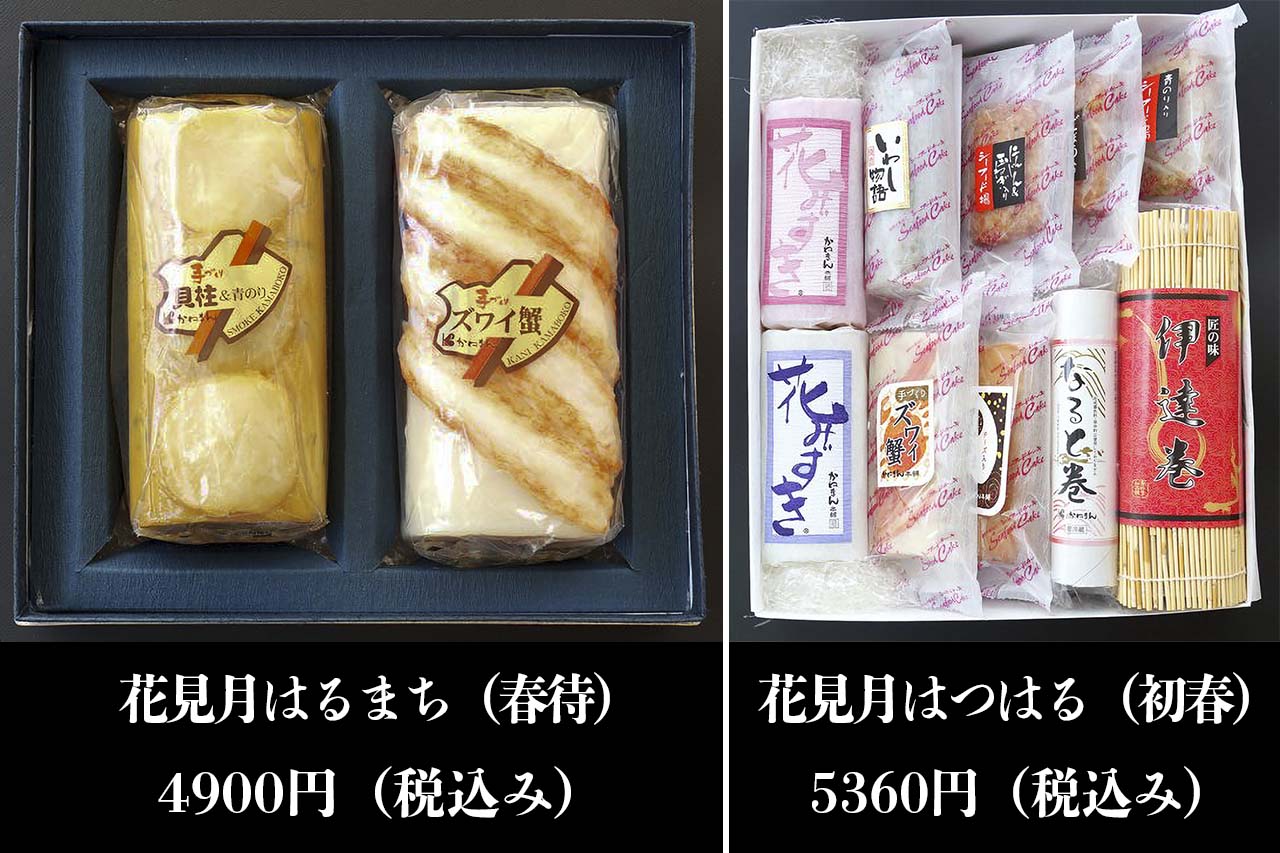 オリジナル創作かまぼこ「シーフードケーキ」で知られる、平字下高久、かねまん本舗は、各種かまぼこがセットになったギフト品を多数取りそろえ、歳暮用、年末の年越し用品として販売中。 貝柱や、ズワイガニをぜいたくに使った、12月限定生産の「花見... -