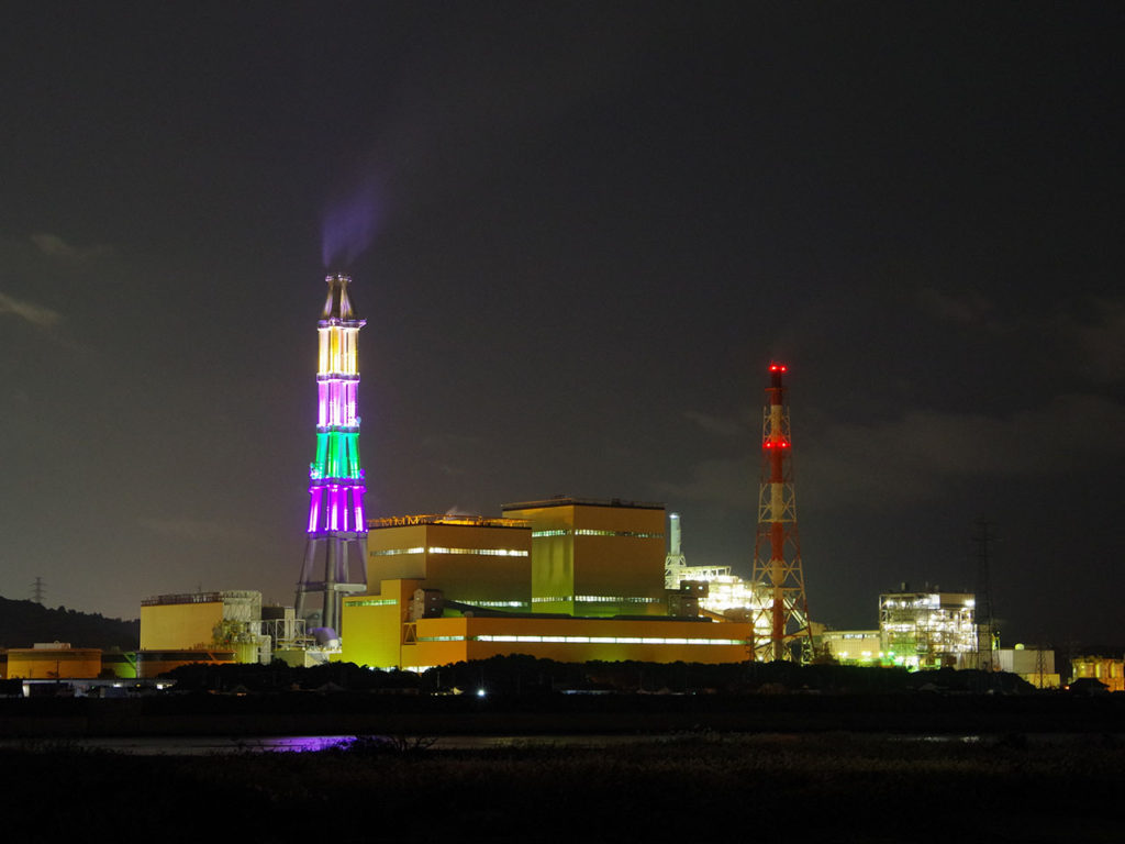 季節に合わせライトアップ 常磐共同火力勿来発電所「植田」